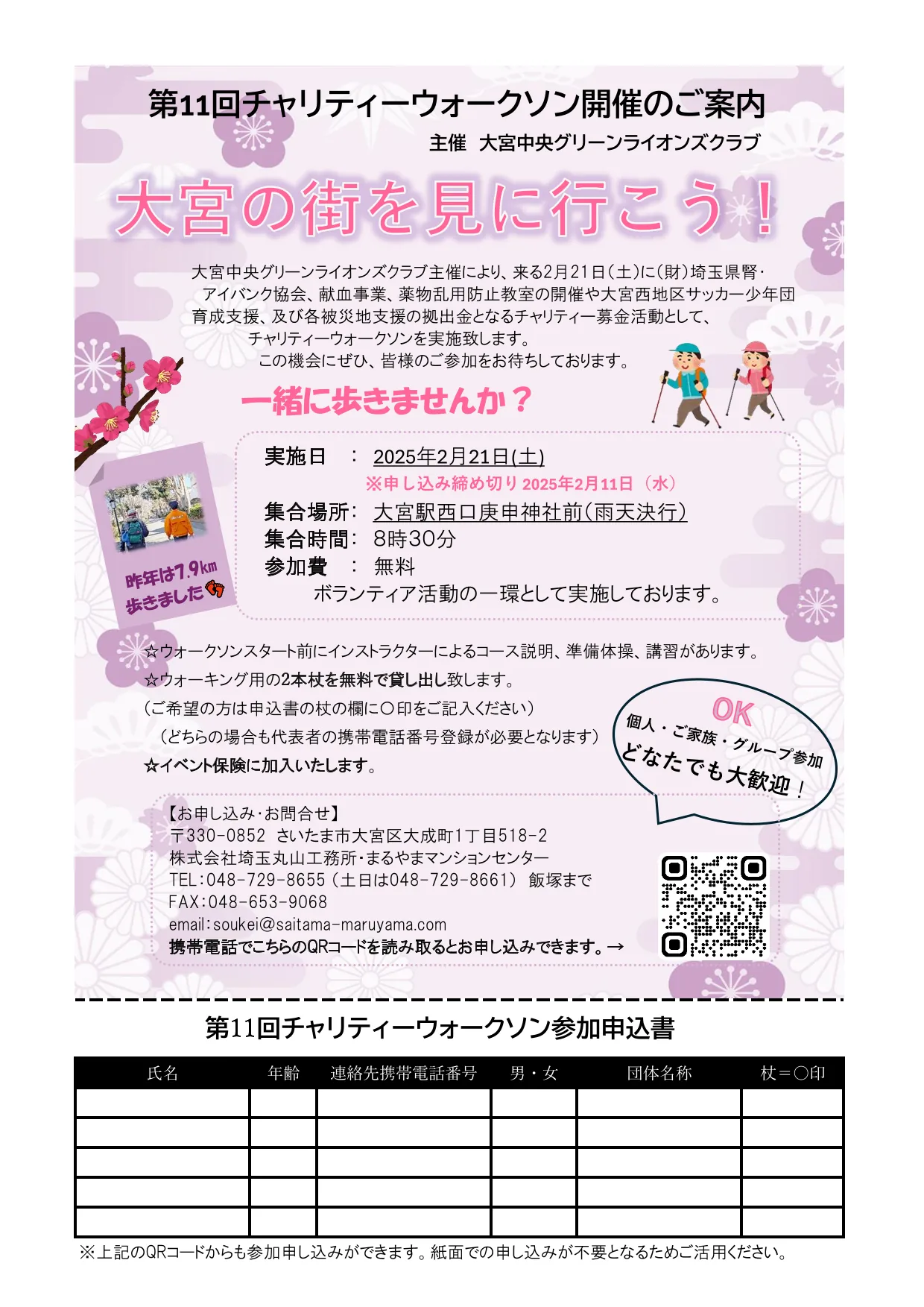 - 2025/2/15 第10回チャリティーウォークソン – 2月15日(土)開催予定